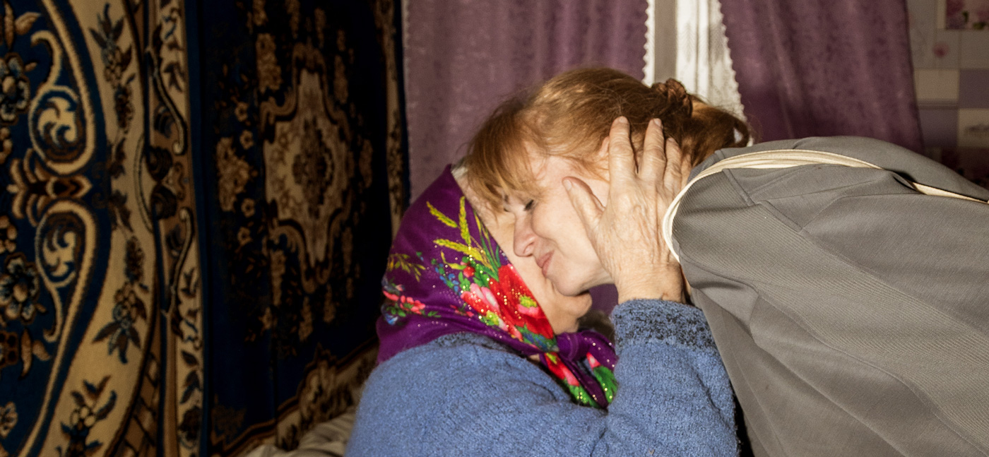 In den nächsten Tagen ging es in die Region Mykolajiw (120 km östlich von Odesa), welche von den ukrainischen Streitkräften 2022 zurückerobert wurde, somit schwer umkämpft war und immer noch stark zerstört ist. An einem Ort, wo TMR einige der Güter aus Deutschland und Europa zwischenlagert, war die Front in Cherson nicht nur zu hören, sondern zu spüren. Hier im ländlichen Raum war die erste Station ein Altersheim, wo alten Menschen Weihnachtspakete von Senioren aus Deutschland überreicht wurden. Mehr als der Inhalt rührte diese Menschen, dass irgendwo auf der Welt an sie gedacht wird und sie nicht allein sind.